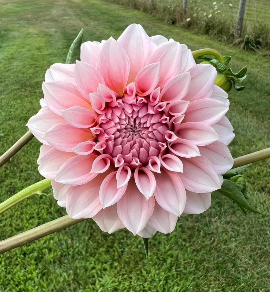 This pale pink dahlia will steal the show. It is a large dahlia measuring at about 7 inches.